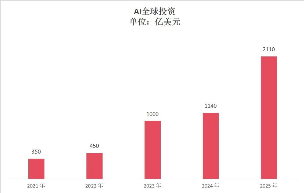 打开2021-2025年全球AI行业投资金额折线图,一条陡峭向上的曲线,道尽了这个时代的发展真相——