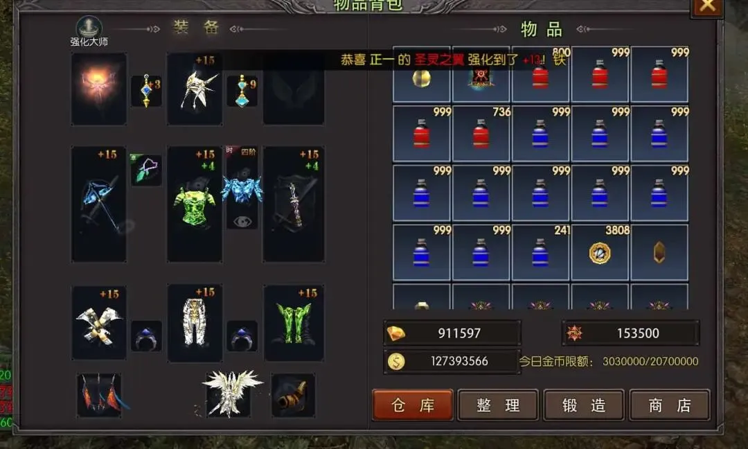 1. 材料获取:打造终极装备需消耗“荣耀宝石”“终极碎片”,荣耀宝石主要通过高阶世界BOSS(蛮荒霸主、上古龙王)、终极副本通关奖励、国战功勋兑换获取;终极碎片主要通过分解橙装、击杀终极BOSS、完成每日高阶任务获取。零磕玩家每日清完高阶副本、蹲守世界BOSS,一周可积累足够材料,无需额外花费。