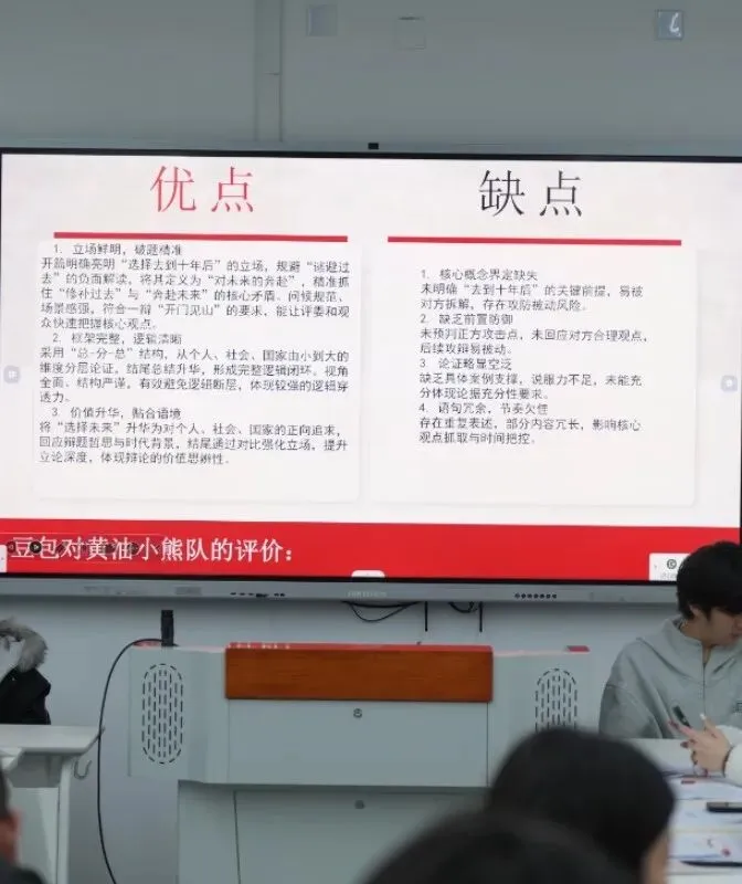 3月26日晚19:00,辩论赛初赛在B703、B704、B705三个教室同步拉开帷幕。同学们认真思考、从容发言,一个个专注的瞬间,定格了大家全力以赴的模样。经过激烈比拼,“迪迦队”与“黄油小熊队”成功晋级决赛。