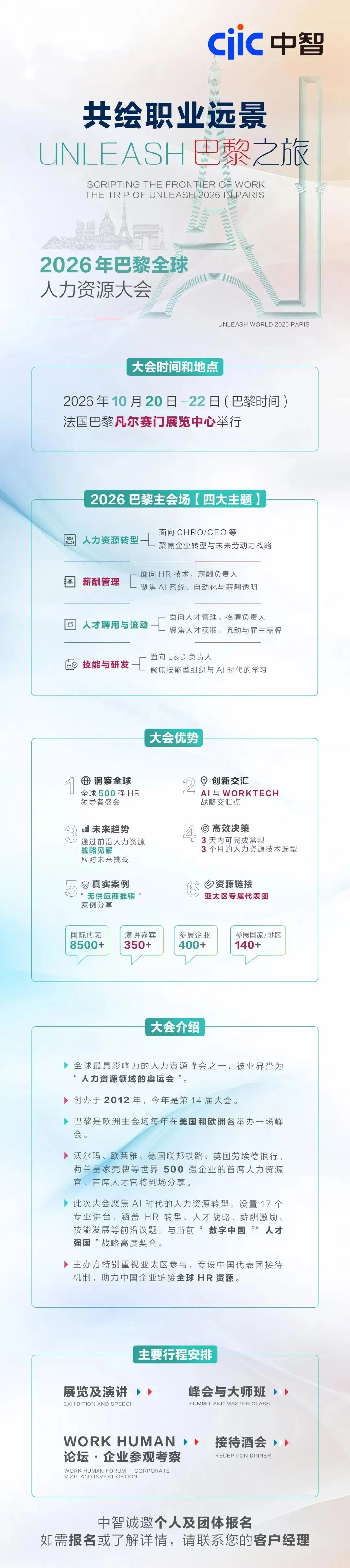 中智集团诚挚邀请各企事业单位HR负责人、行业从业者报名参会。让我们相聚巴黎,在思想交锋中把握行业先机,在全球视野下共绘行业远景。