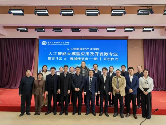 近日,幸福科创园孵化企业吉斗云联合吉林工程技术师范学院人工智能现代产业学院打造的“吉斗云 AI 黄埔精英班·一期”开班仪式,在吉林工程技术师范学院长德校区举行。长春市南关区副区长吴永进、学院领导及吉斗云科技董事长杜力军等政企校代表出席。