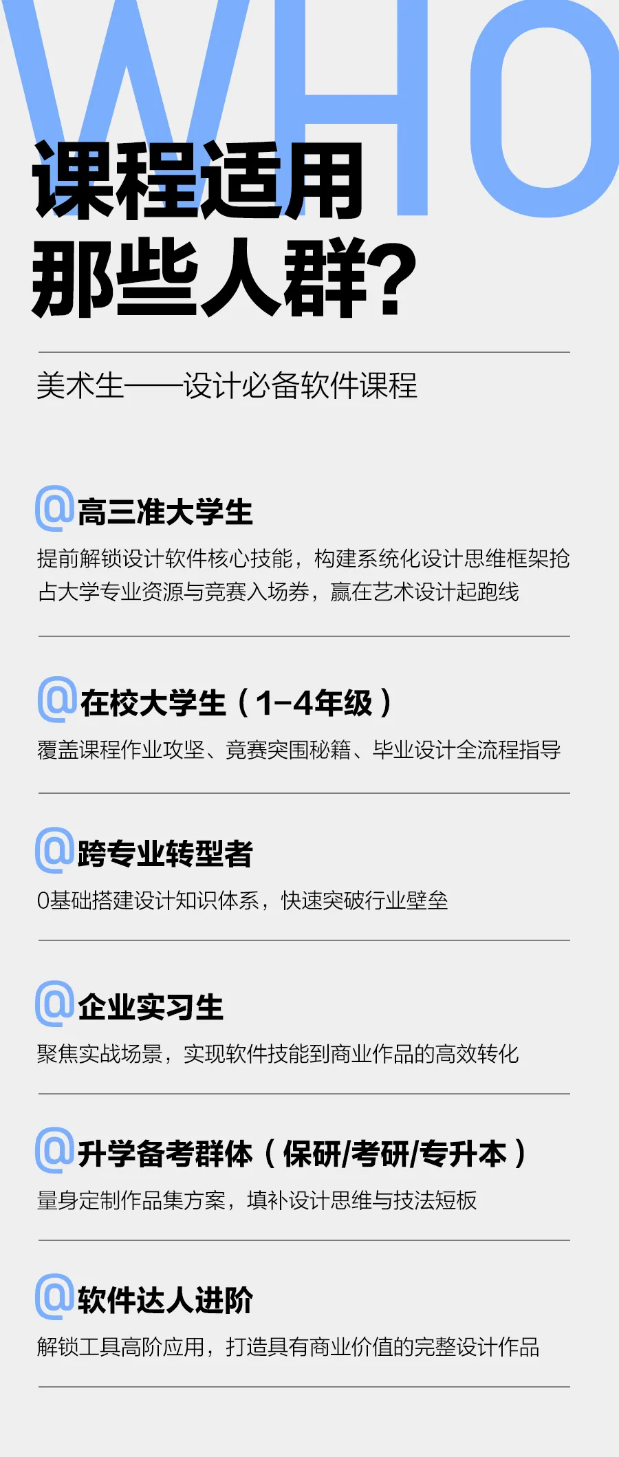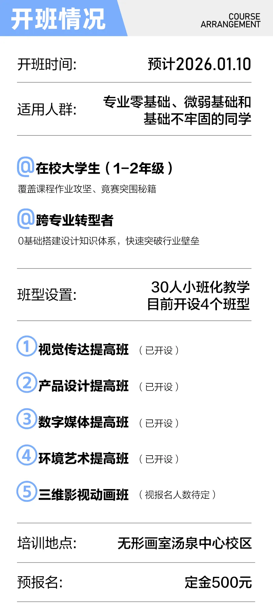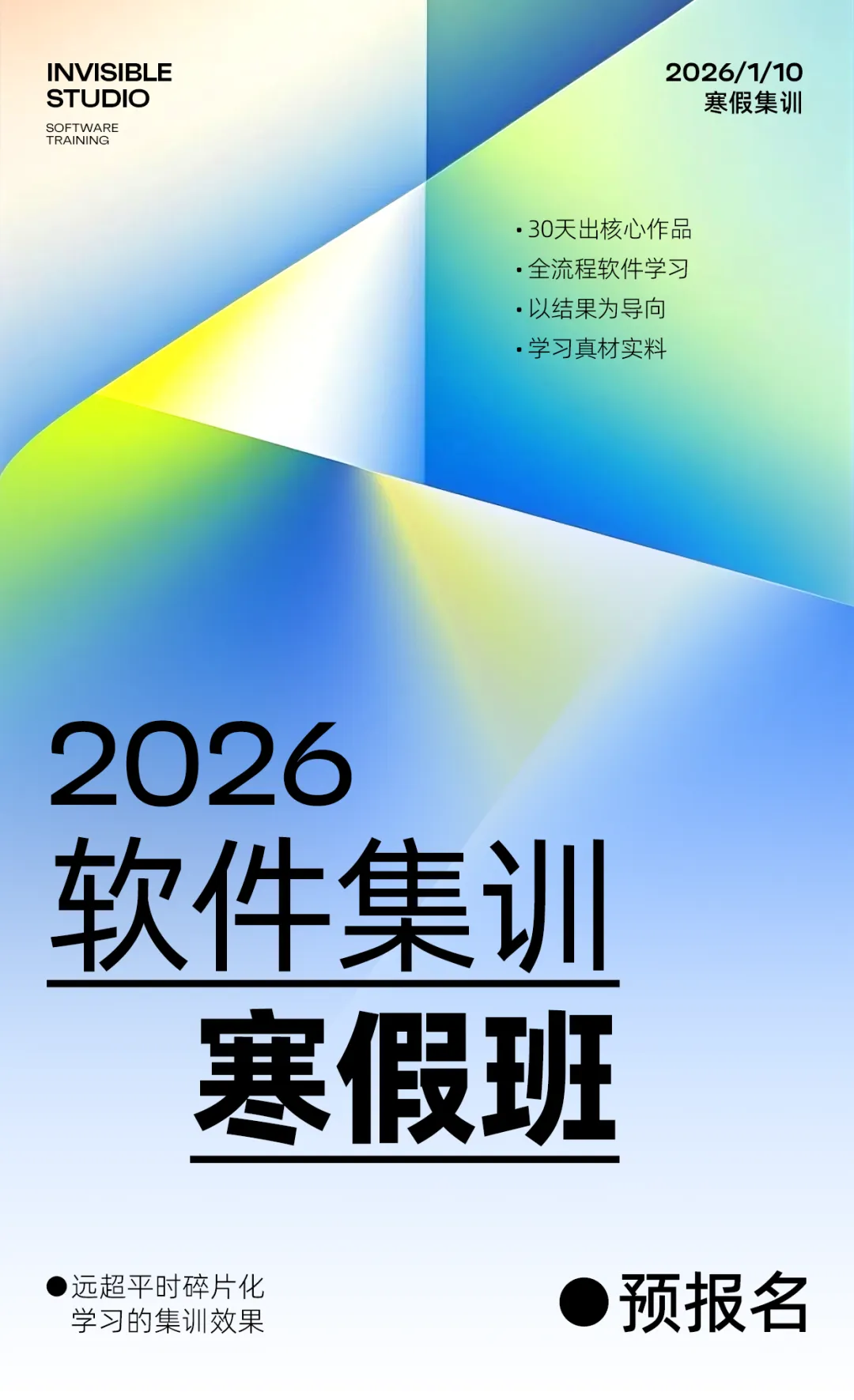 【寒假软件集训营】预报名开启!30天专业软件集训班,远超在校碎片化学习的效率这个夏天,我们专为美术生打造的软件集训班圆满结课,收获了满满的成果与好评!现在,应广大学员要求,无形画室2026年寒假软件集训班预报名正式启动。本期集训将继续专注于美术与设计专业核心软件的高效教学,通过集中、系统的强化训练,帮助你快速攻克软件难题,显著提升创作效率与作品质量,为你的设计竞赛、实习申请和未来就业奠定坚实根基。点击图片查看往期回顾数字媒体设计班-优秀作品展示视觉传达设计班-优秀作品展示产品设计班-优秀作品展示环境&景观设计班-优秀作品展示End