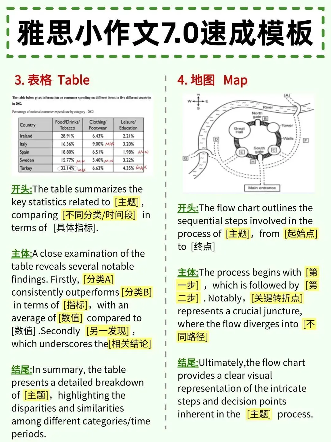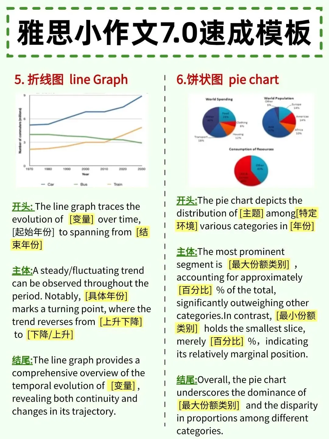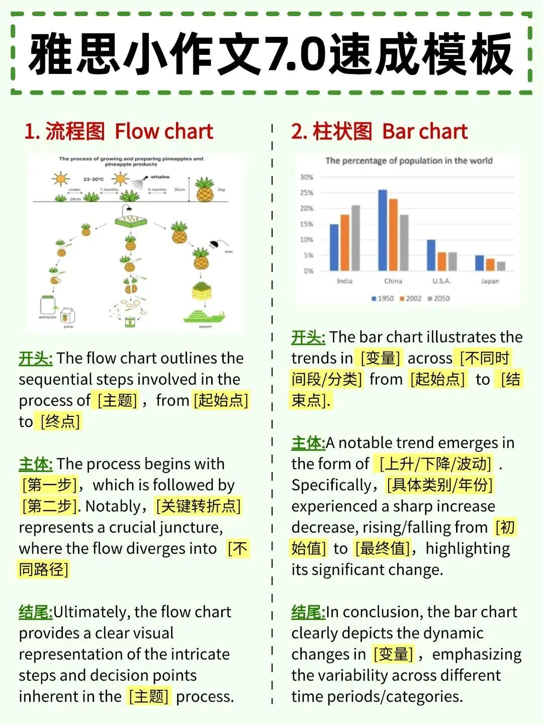 🔥这份《雅思小作文7.0速成模板》能让你迅速理清思路,知道每个部分该写什么;