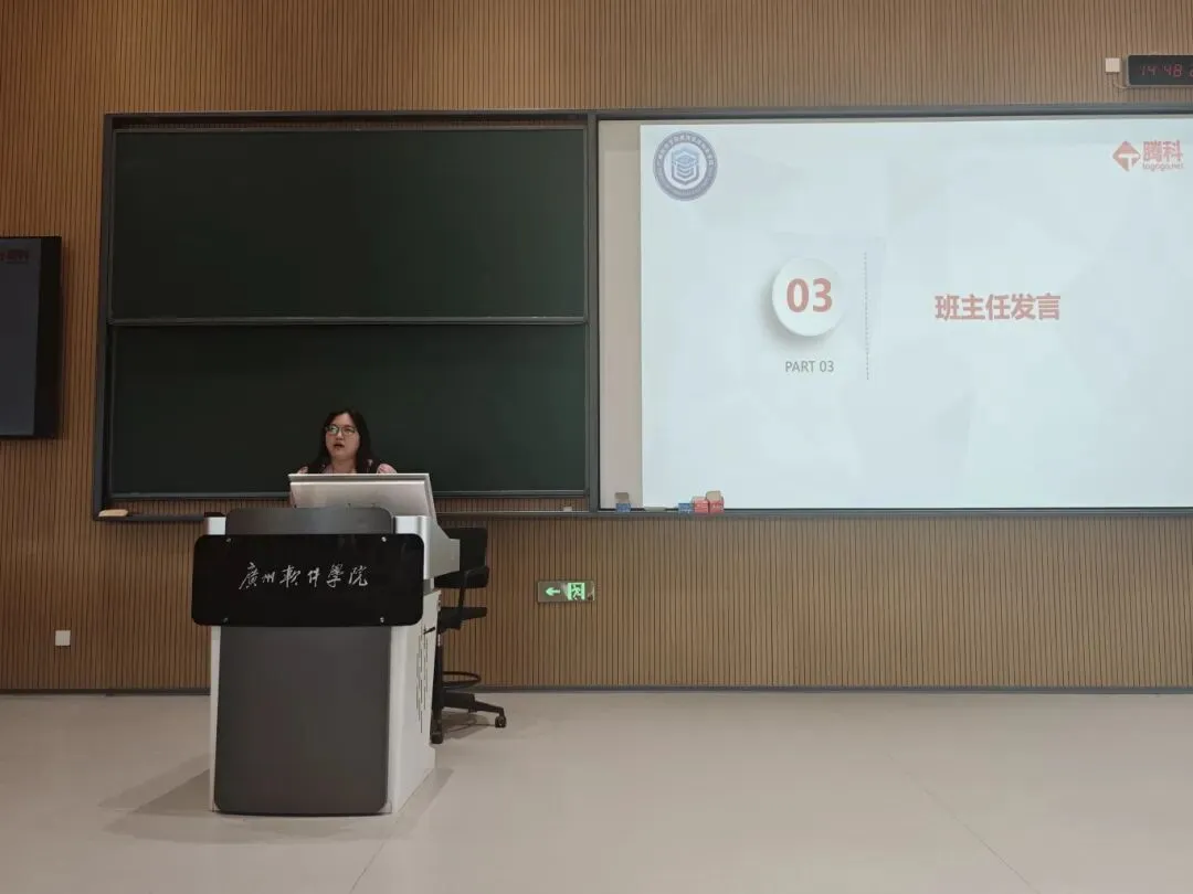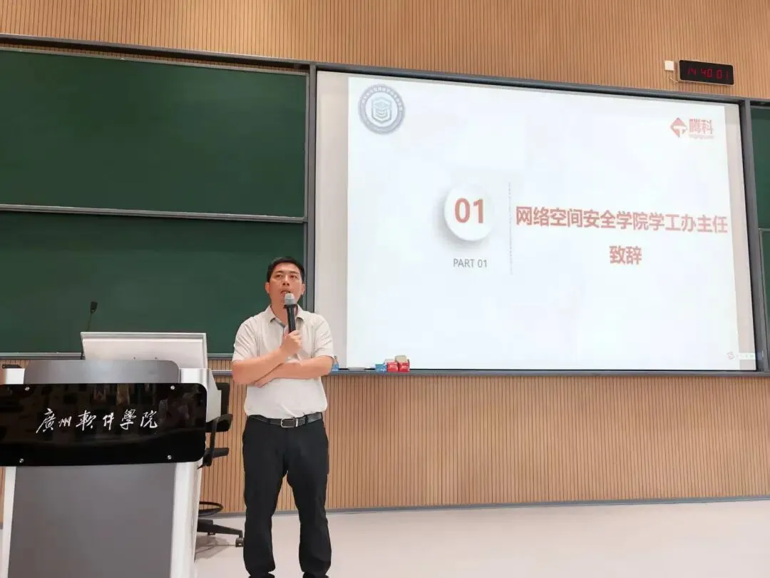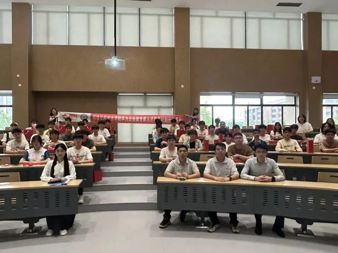 首先唐志辉老师致辞,围绕“规划、实践、突破”三个核心关键词与学员交流。他强调,学员要做好学业与职业发展规划,明确大学四年成长方向,以专业证书、学科竞赛为抓手夯实专业基础;要重视实践锻炼,通过参与竞赛、项目实践、社会实践等提升综合能力;要借助华为认证与校企合作的平台优势,主动学习行业前沿技术,在专业领域深耕突破,同时带动身边同学形成共学共进的良好氛围。他寄语全体学员,珍惜大一学习时光,筑牢专业根基,把握发展机遇,在探索与实践中书写精彩的大学篇章。