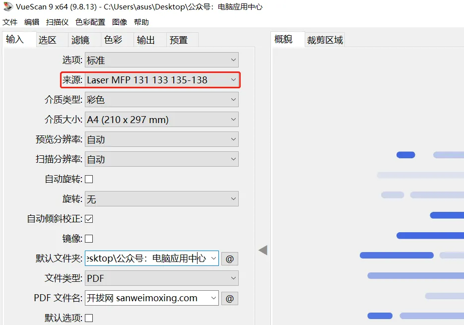 VueScan扫描到PDF(单页和多页)