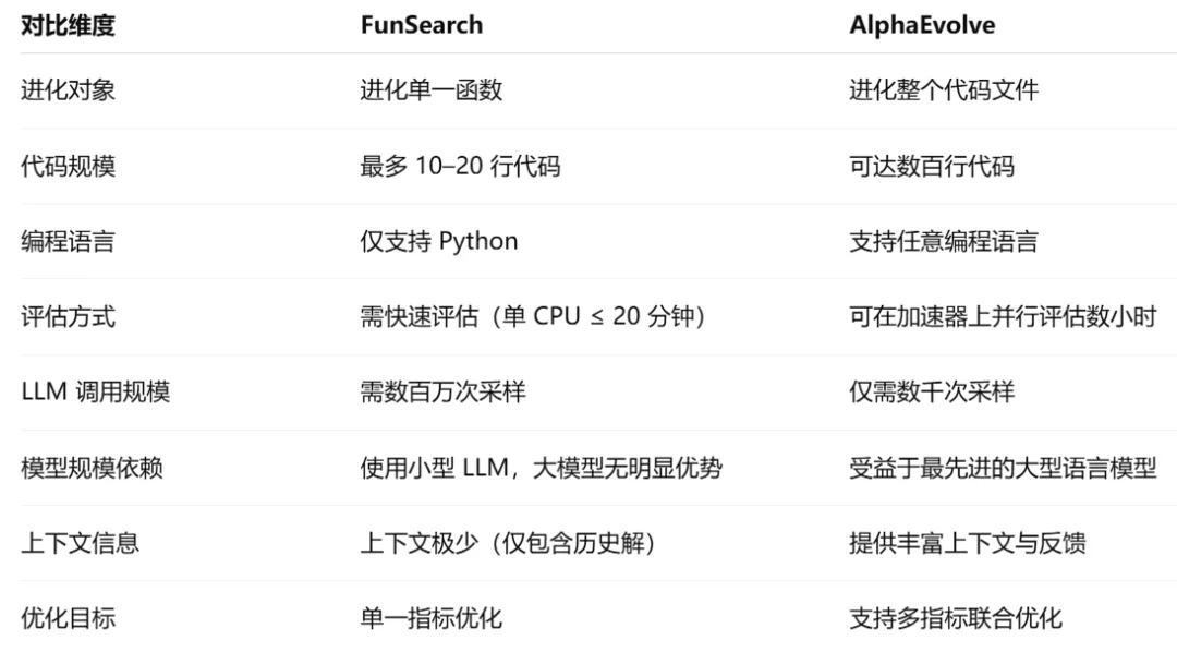 图 1 FunSearch 与 AlphaEvolve 对比