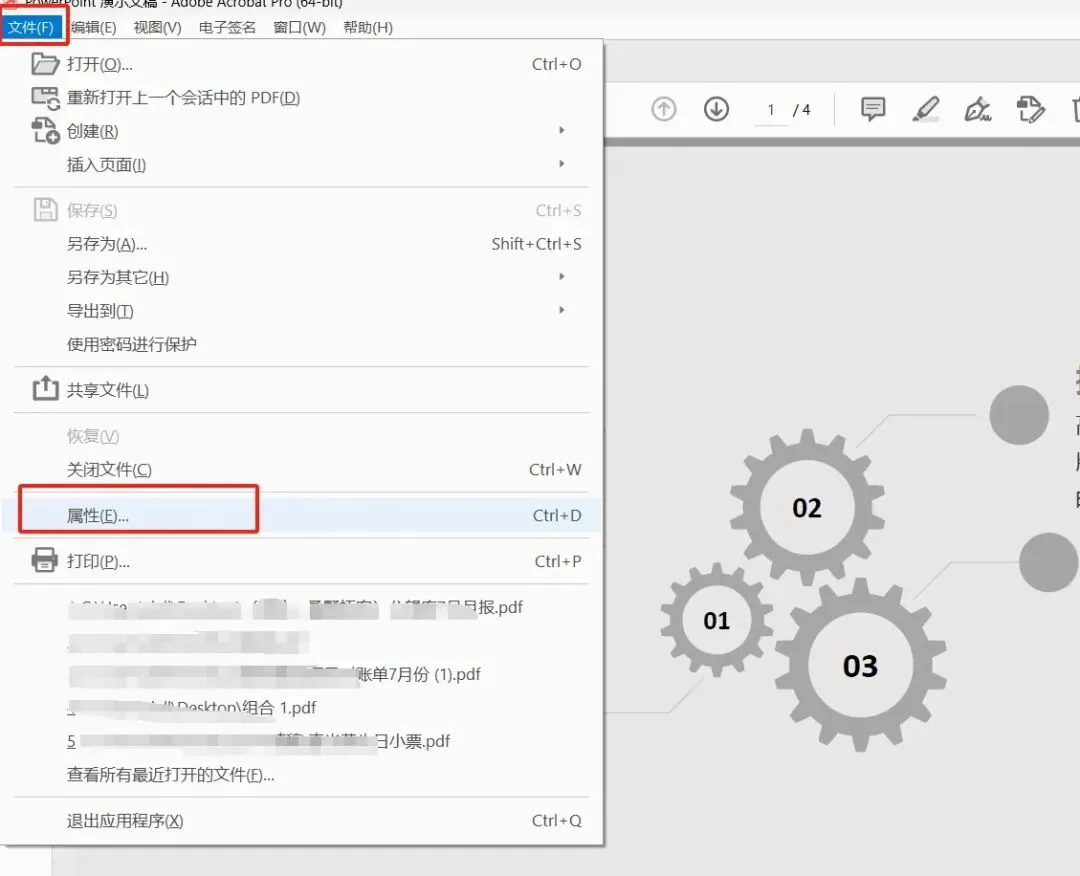 操作路径:点击顶端工具栏的「文件」 -> 「属性」。