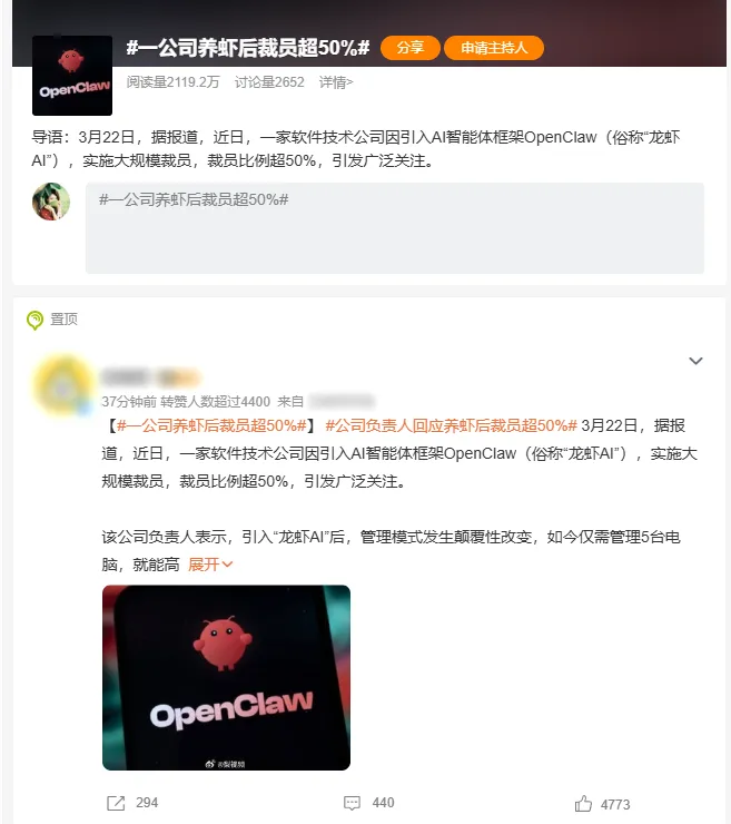一家软件技术公司,因为引入了OpenClaw(俗称“龙虾AI”) 的智能体,直接原地裁掉了超过一半的员工。