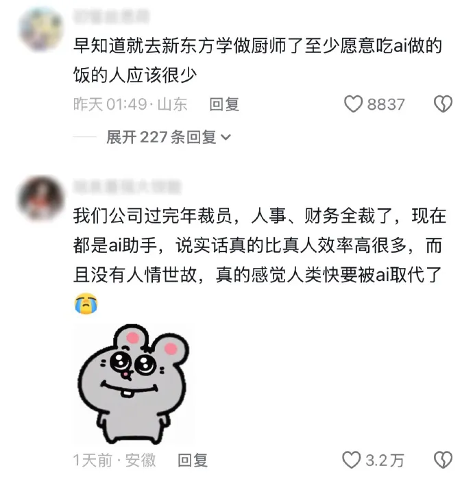 大家都在开玩笑说:“早知道去学厨师了,至少AI做的饭没人愿意吃。”或者“选会计吧,出事了AI不能替老板坐牢。”