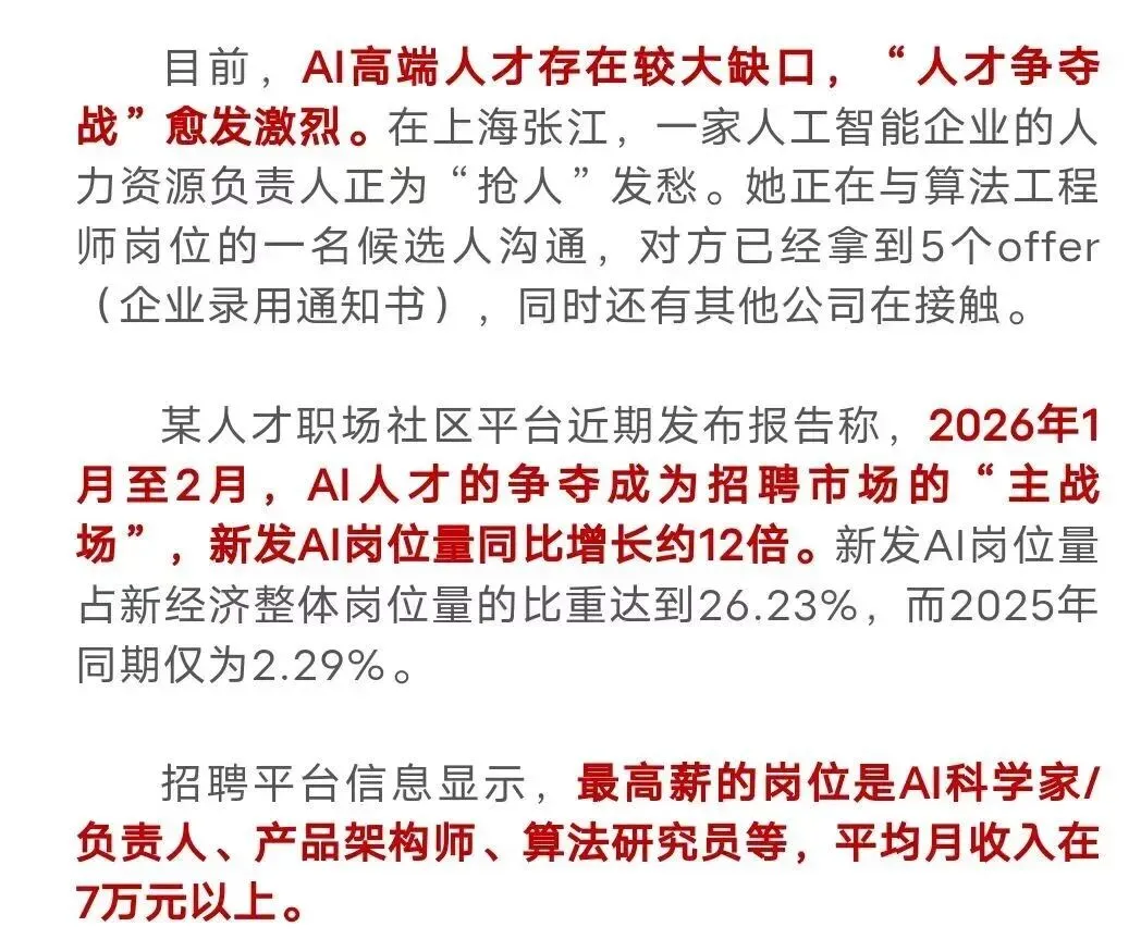 不仅如此,现在很多岗位都明令要求“熟练使用AI智能体”,相关人才稀缺,薪资亮眼。“十五五”规划重点报道:AI高端人才已成缺口!