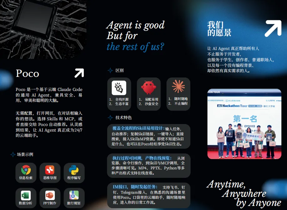 广大的AI创业者,可以调用开源大模型,以及较为充足的算力支持,来打磨AI应用及产品。这段时间,记者遇到了很多让人眼前一亮的智能原生应用。比如,浙江大学计算机专业在读博士陈启源和几位同学,在开源社区“魔搭社区”,打造了一款名为“Poco”的应用。Poco把类似“龙虾”(openclaw)等智能体装入到了更友好的云端界面里,变成普通人也能随时使用的AI同事,同时避免了风险。陈同学说,这款产品从创意到最后落地成为产品,都是基于AI开源生态打造起来的。值得一提的是,智能原生新业态中,AI的作用不只是提升效率、降低成本,而是发挥主导作用。在制造、医药、交通等垂直领域,智能原生带来的变革正在发生。比如,总部位于上海的AI制药企业英矽智能,该公司近期发布公告,与传统药企巨头礼来达成最高27.5亿美元的合作。不同于传统的药企,英矽智能由AI主导创新,团队中有数量众多的计算机科学家,通过自有AI平台,加速新药的筛选研发过程中。传统早期药物研发平均需4.5年,而2021至2024年间,英矽智能在20多个自研项目中,将从立项到临床前候选化合物提名的时间压缩至12到18个月。浙江也有类似的AI制药相关企业,比如入选过科技新小龙的剂泰科技,以及西湖云谷智药等等。智能原生的兴起,带来创新范式的变革。一批生于AI,长于AI的组织也在兴起。比如,近段时间很火的OPC(一人公司)等。在AI智能体的参与下,很小的组织也能生成许多新解法、新方案。随着大量“AI 员工”成为生产主力,AI也在引发生产方式的根本性变化。浙江有企业发布了专门为AI智能体设计的操作系统。人工智能时代,给了浙江中小创业者又一次机遇。就像改革开放之初,浙江众多中小企业主凭着“一招鲜”产品,慢慢打拼壮大。2025年10月,浙江发布了《推动智能体创新应用的行动方案(公开征求意见稿)》,该方案提出:到2027年,培育打造行业领先的智能体开发平台10个、高价值场景100个、智能原生产品(服务)1000项,部署推广至应用企业10000家。这一连串的数字,能撬动浙江智能原生的无限创意,服务于人们美好生活需求。