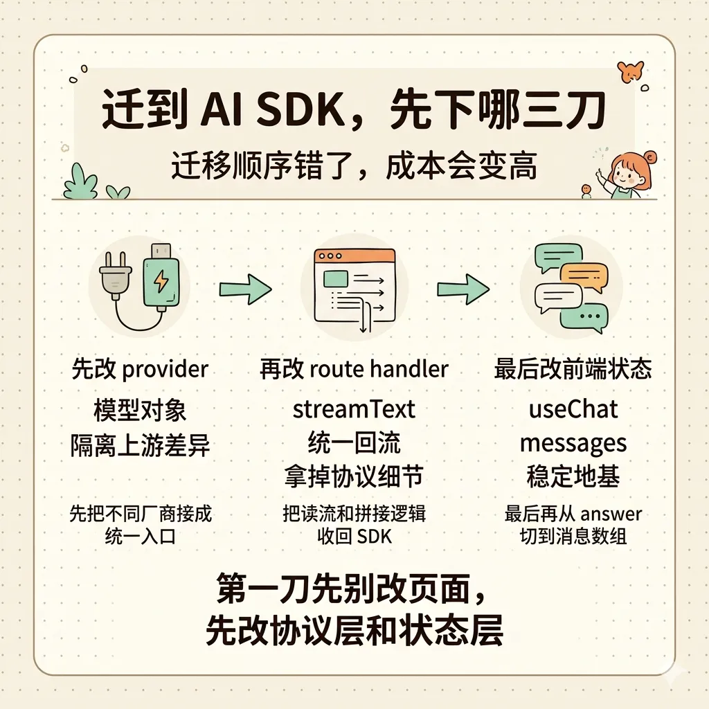 从手写版切到 AI SDK,第一刀先别改页面,先改协议层和状态层。