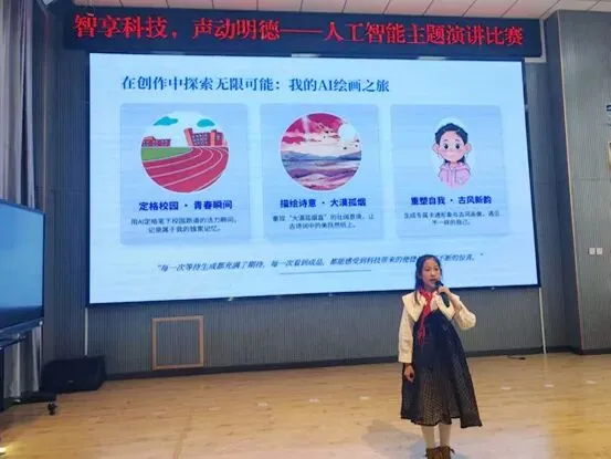 作为教育部首批科学教育实验校,明德学校始终以“星光教育” 为载体,深耕科学教育与人工智能普及工作。学校严格按照内蒙古自治区《中小学人工智能课程纲要》要求开设人工智能课程,每学年不少于 8 课时,采用独立设置与学科融合相结合的方式,构建 “概念与基础—技术与原理—应用与创新—伦理与安全”四位一体课程体系。本次比赛覆盖 3-6年级,分为班级初赛与校级决赛两个阶段,实现人人参与、班班展示。各班班主任、语文教师、信息科技教师组建指导团队,全程参与演讲稿打磨、演讲技巧训练、PPT 制作优化等环节,严格把关内容科学性与表达规范性,为比赛顺利开展筑牢基础。