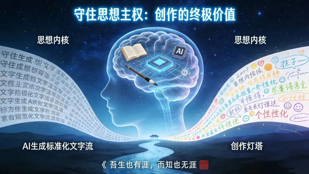 💌 同频分享:转发给身边的创作者朋友,一起用《庄子》“以神遇而不以目视”的圣贤智慧,在AI时代守住创作本心!回复「创作」领取《AI辅助创作避坑指南》电子版。