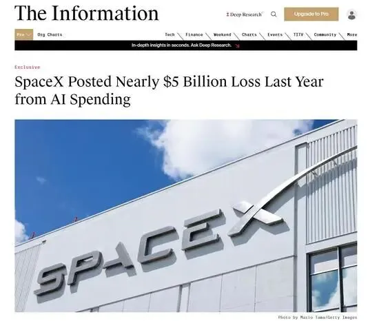 最新数据显示,SpaceX去年总收入超过185亿美元,同时净亏损高达50亿美元。这个财务缺口并非源于传统的航天业务或星链网络,而是因为今年2月SpaceX激进收购了埃隆·马斯克(Elon Musk)旗下的AI初创公司xAI,导致其必须在财务报表中合并计算xAI去年的巨额亏损。这直接打破了SpaceX原本健康的资产负债表。