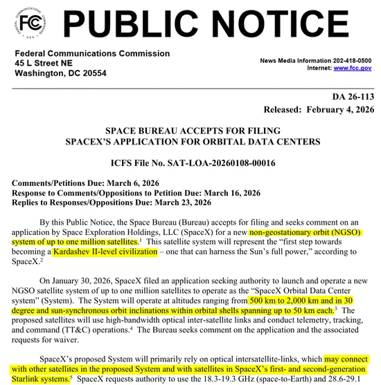 与此同时,为了支撑IPO的高估值,马斯克还抛出了一个极具颠覆性的庞大概念,即建立一个由100万颗太阳能卫星组成的在轨AI数据中心星座。