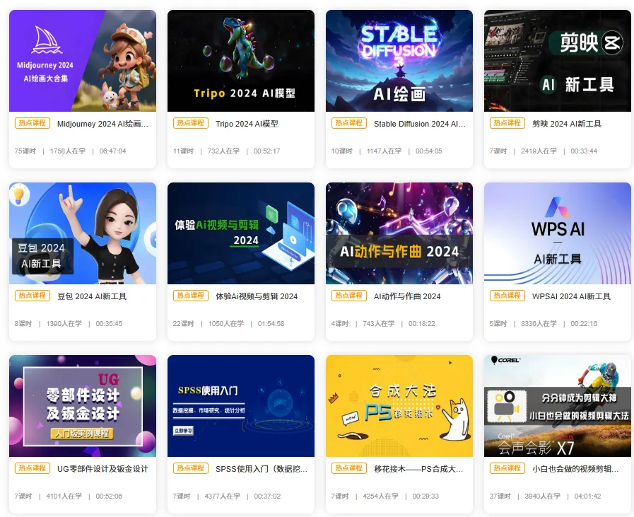 紧跟时代趋势,平台上线了AI新工具课程,助你抢占AI时代先机。