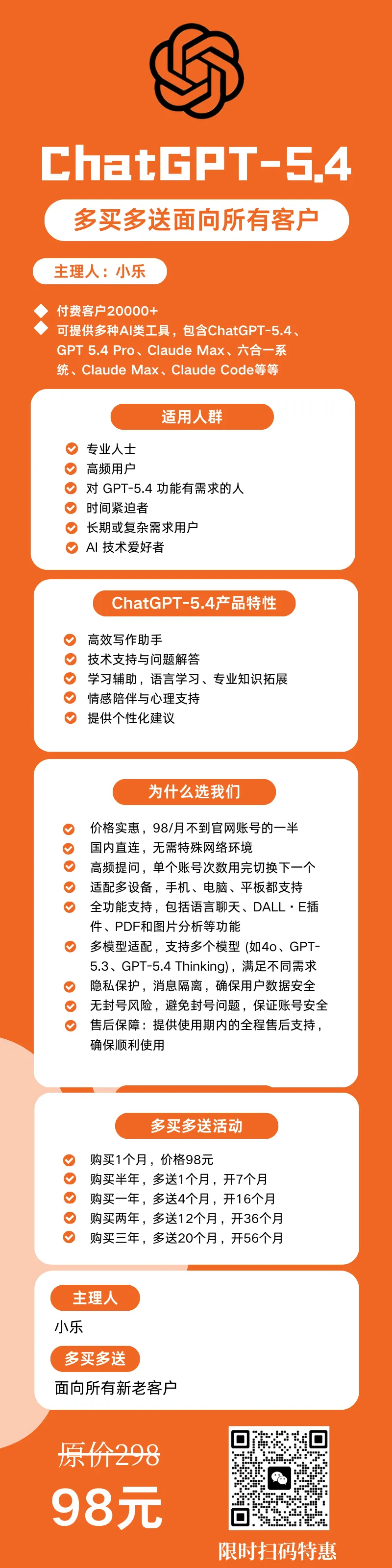 一句话说明:用官方一半价格的钱!用跟官方 ChatGPT 5.4 一模一样功能,无需魔法,无视封号,不必担心次数不够。