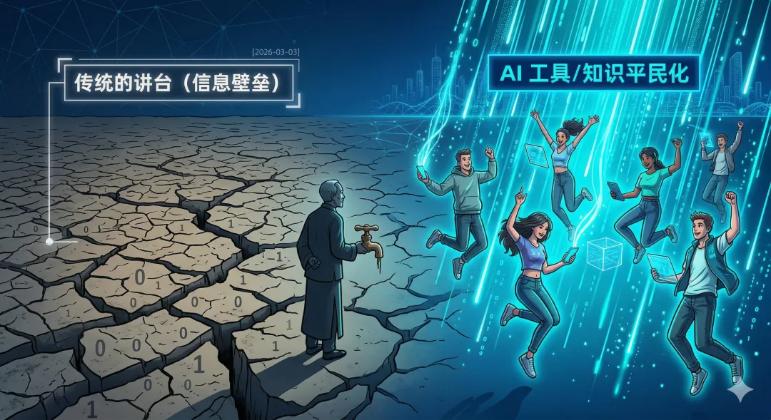 当学生可以通过精准的“提示词(Prompt)”在几秒钟内获得比教科书更生动、更前沿、更结构化的知识时,老师那层基于“我知道你不知道”的信息差护城河,已经彻底干涸了。