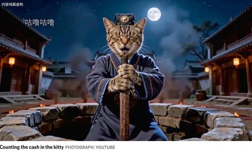 在动画系列片《橘猫道长大战僵尸王》中,一只身披飘逸道袍的虎斑猫,手持灵符和激光套索,与一群凶猛的僵尸小猫展开激战。这些猫咪的冒险故事被压缩成每集两分钟的微短剧——这是一种将传统电视剧与可滑动浏览的社交媒体帖子相融合的娱乐形式。用AI制作的、会说话的猫咪肥皂剧听起来或许很小众,但在中国却风靡一时。这位"道长猫"已吸引了50万次观看。