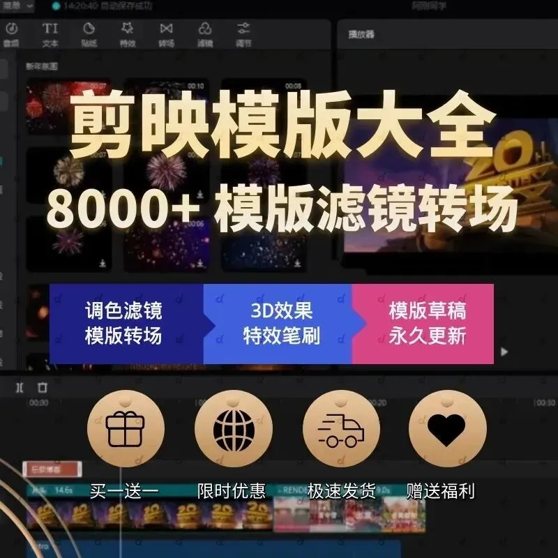 8000+剪映专业版优质模版/2023热门模板滤镜转场/预设素材包/一键替换使用/含贴心教程资源还赠送: (含配套素材和实战课程)