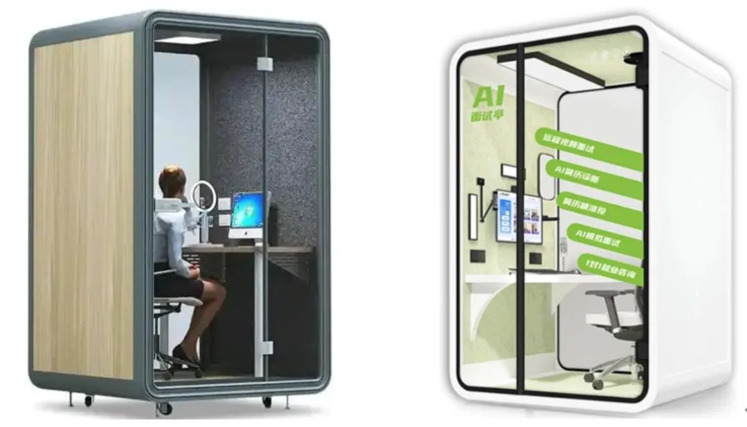 学生独立空间: 采用独立隔音实体舱设计,给学生提供私密无干扰的面试训练环境,消除学生在开放空间练习的干扰。
