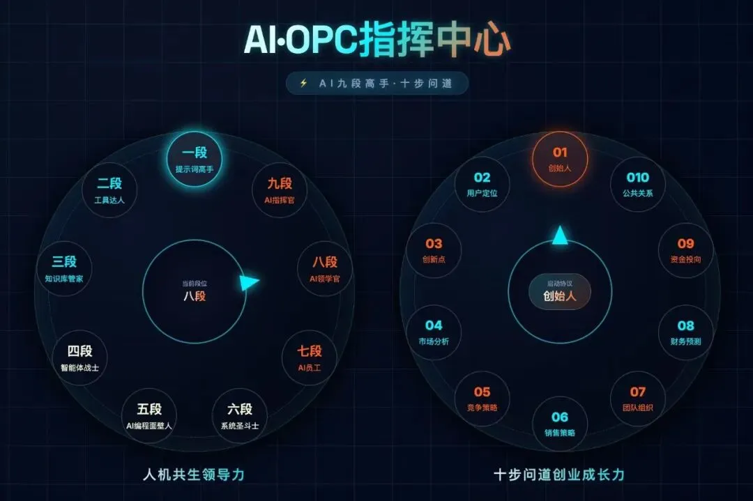左边是九段体系(知道AI能力边界),右边是场景落地(知道知识管理路径)。