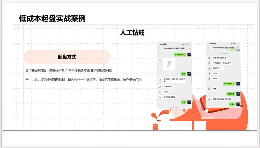 复购实战打法:分享了两种促进高客单用户复购的方法。一是“小连招”产品组合与阶梯式沟通策略,通过爆款引流、优惠券锁定、次爆款转化实现持续销售。二是“游戏思维”的裂变玩法,设计组队拼团等规则,利用社交关系链实现用户自主传播与成交。