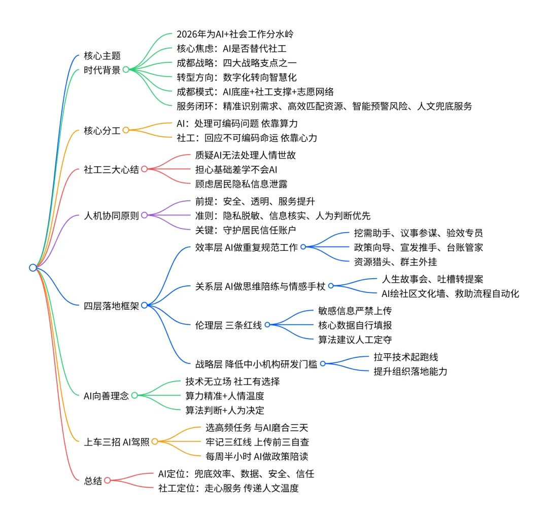 说白了,AI是来兜底的——兜住效率的底、数据的底、安全的底、信任的底。底兜住了,社工才敢大胆走心。