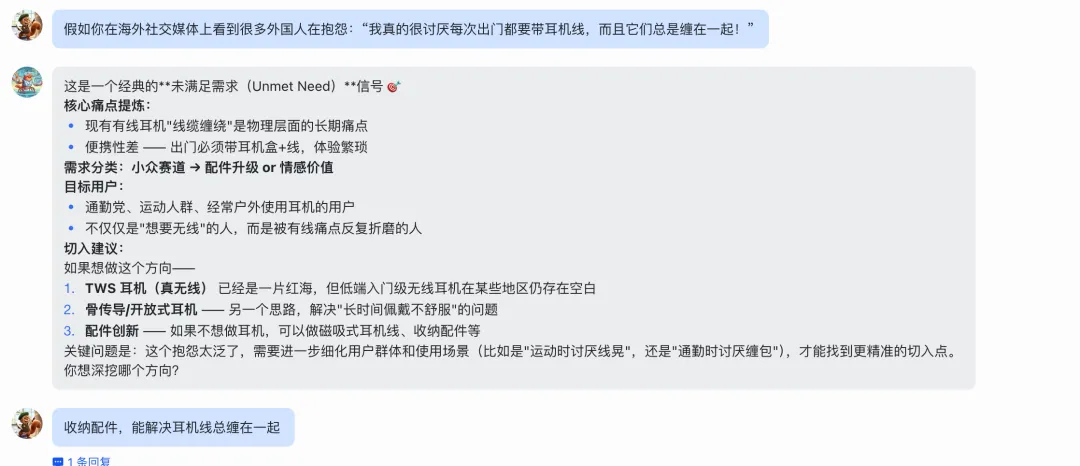 举个例子: 假如你在海外社交媒体上看到很多外国人在抱怨:“我真的很讨厌每次出门都要带耳机线,而且它们总是缠在一起!“