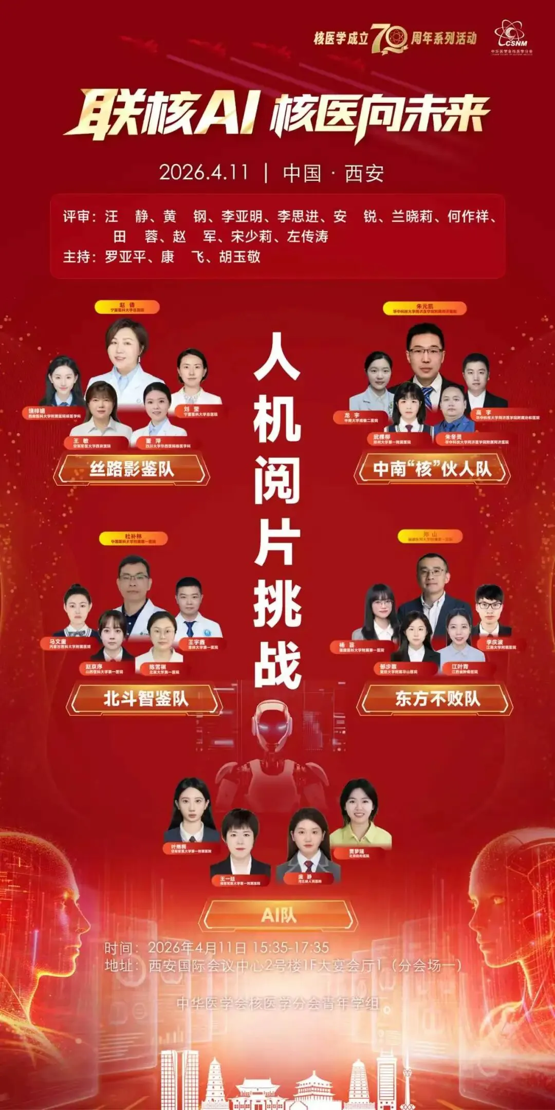 由中华医学会核医学分会青年学组主办‘’联核AI 核医向未来”人机阅片挑战,将于 2026年4月11日第八次全国中青年会议期间在西安国际会议中心举办。