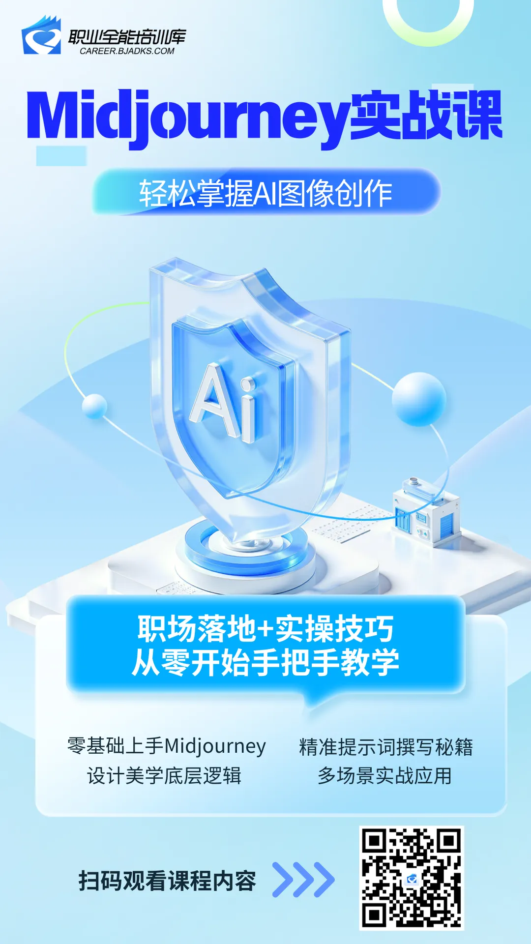 覆盖海报制作、插画创作、文创产品设计、汇报配图、运营配图等高频职场场景,学完就能直接套用,快速产出可商用、高质感的设计成果,真正做到学以致用。