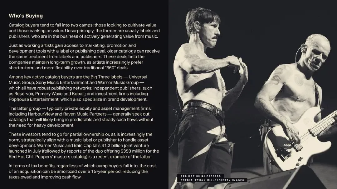 - Slipknot:以1.2亿美元出售目录给HarbourView,尽管其风格较为小众,但拥有忠实的粉丝群体。