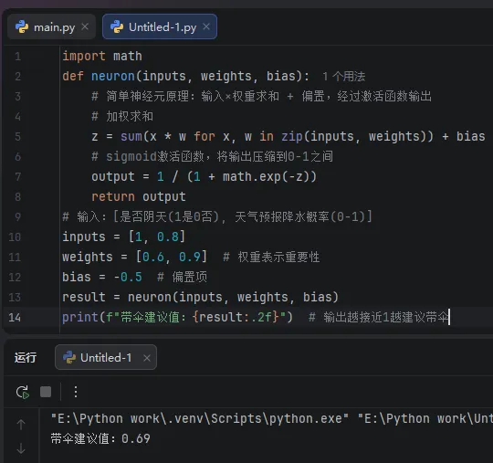 print(f"带伞建议值:{result:.2f}") # 输出越接近1越建议带伞