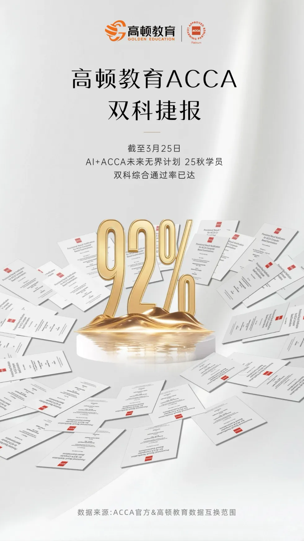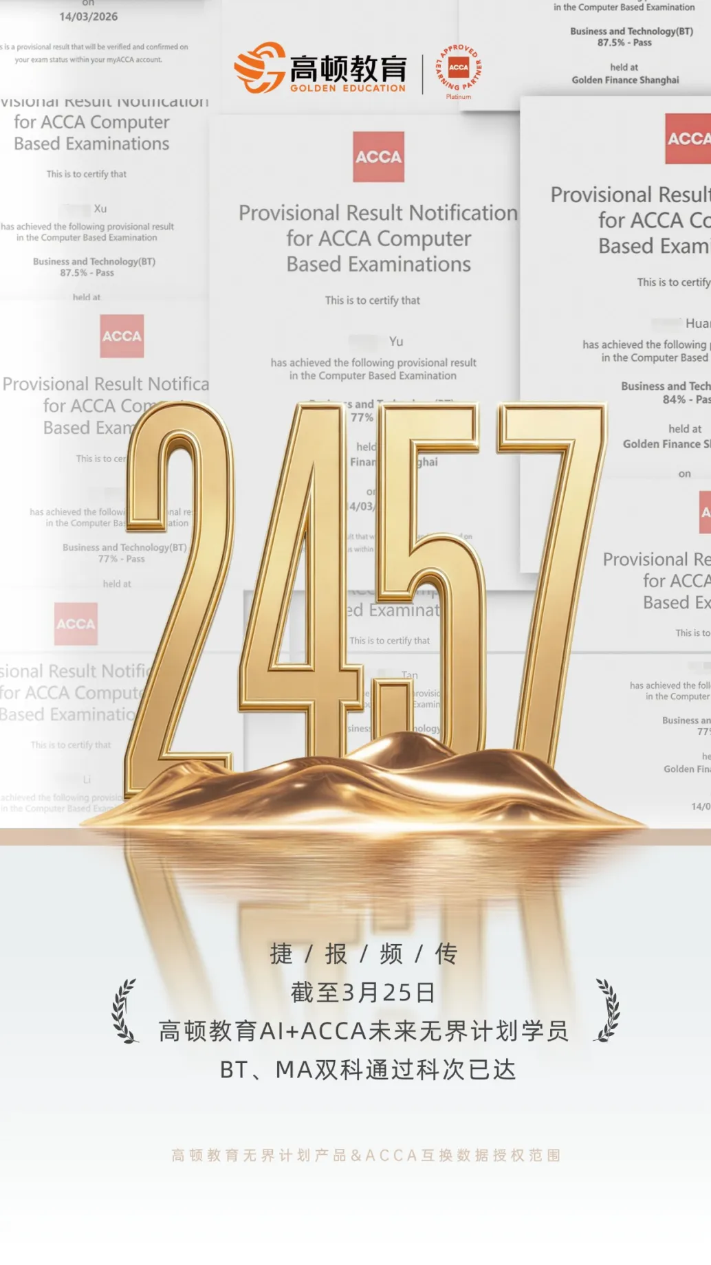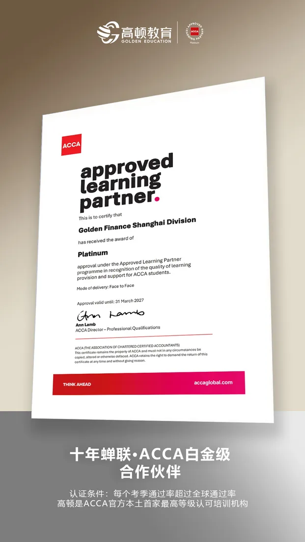同时在2026年3月26年度ACCA官方白金级合作伙伴证书焕新发布,这是高顿教育ACCA蝉联白金级认证的第十年(国内本土首家最高等级认可培训机构)。