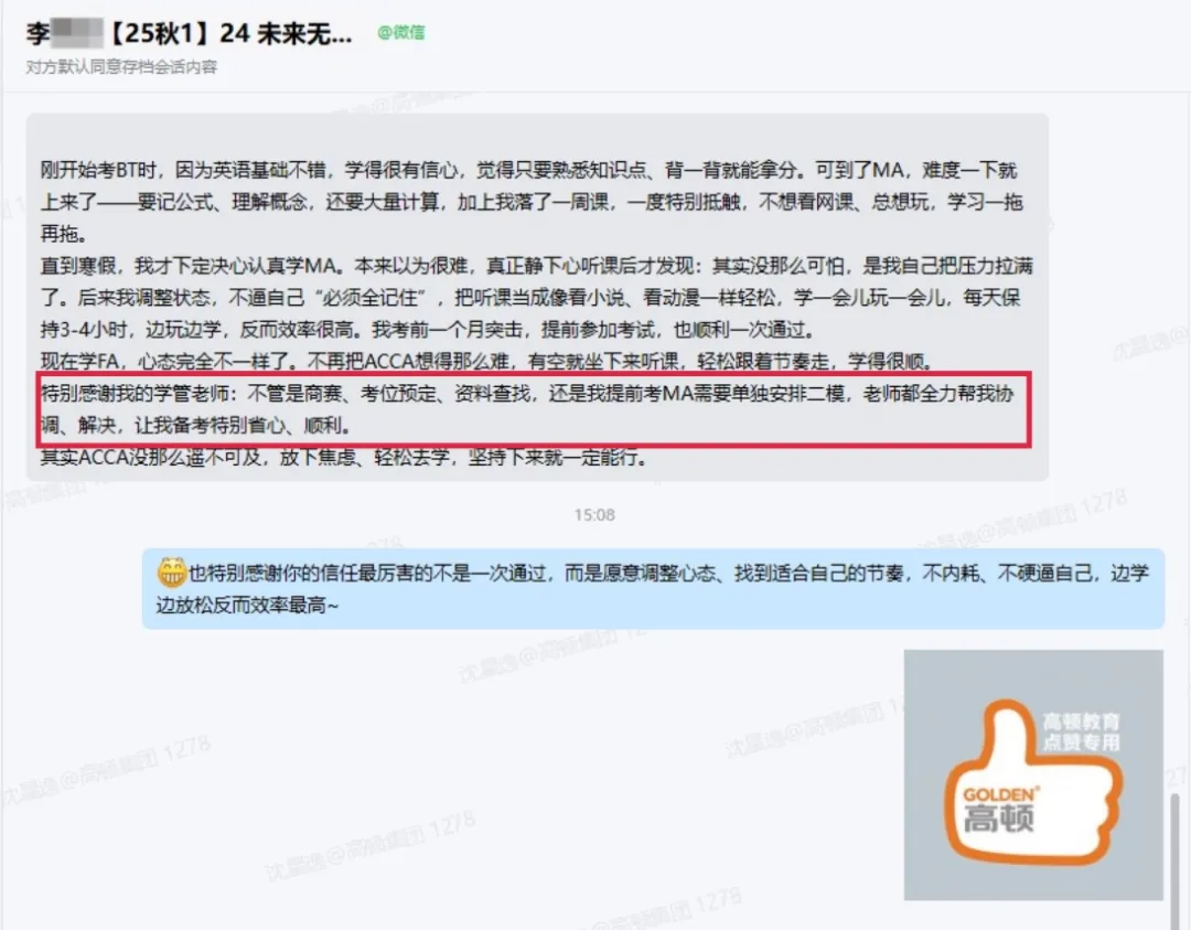 这不仅体现了高顿教育在ACCA教学上的专业成效,更有效增强了学员的学习信心,为后续实现人才培养目标奠定了扎实基础。