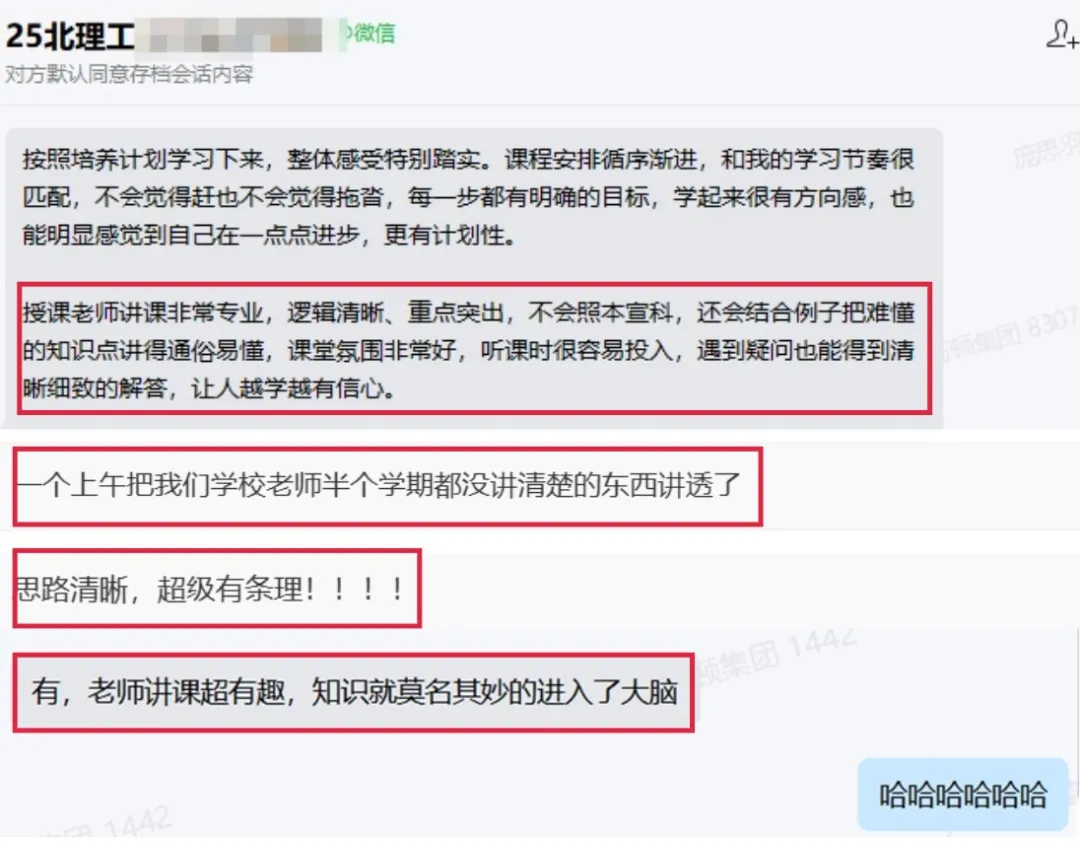 授课老师讲课非常专业,逻辑清晰、重点突出,不会照本宣科,还会结合例子把难懂的知识点讲得通俗易懂,课堂氛围非常好,听课时很容易投入,遇到疑问也能得到清晰细致的解答,让人越学越有信心。