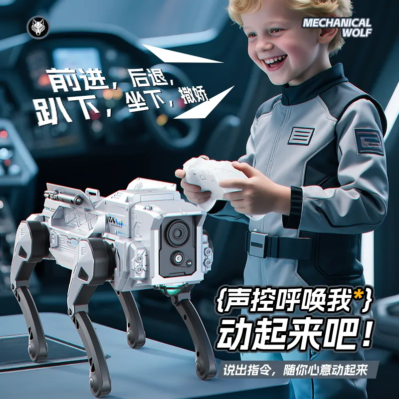 创新的智能声控功能,让互动更具沉浸感。孩子只需清晰说出预设指令,机械狼便会立刻响应并完成对应动作,仿佛拥有了一只真正通人性的 “科技萌宠”。