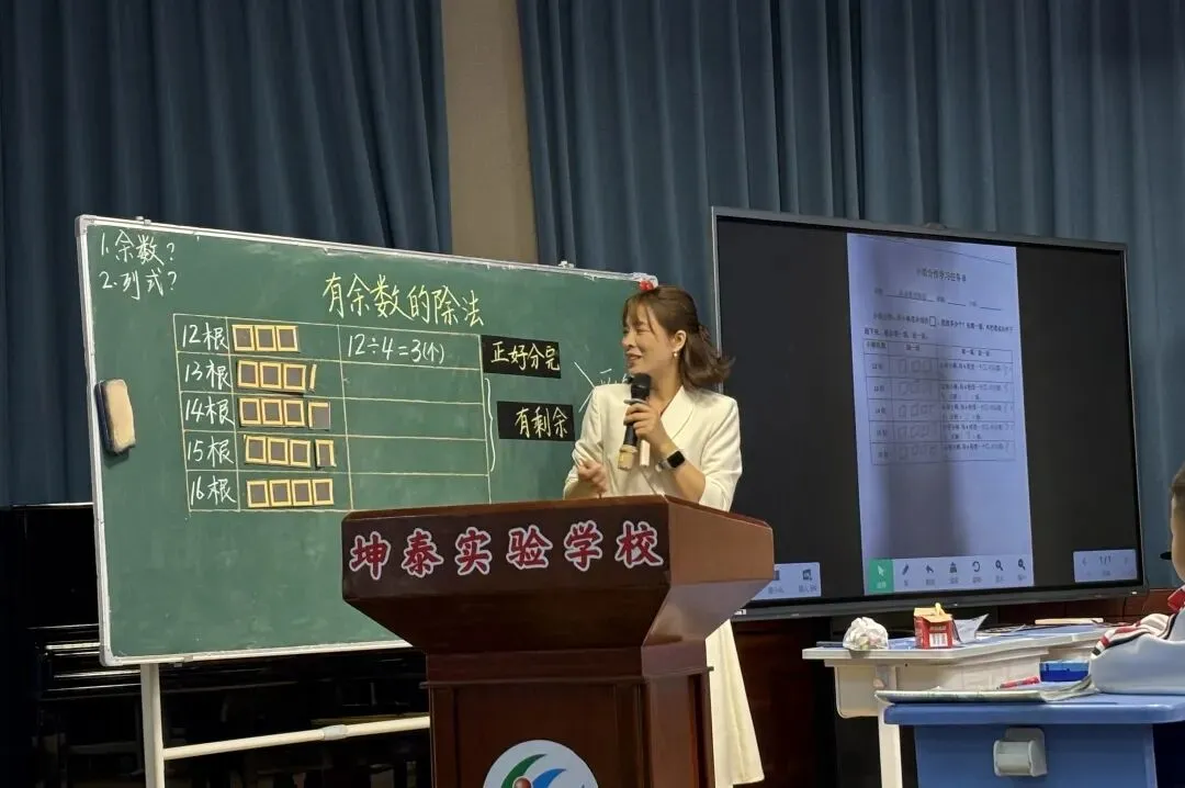 北城实验学校王婧力老师执教《有余数的除法》,以小棒拼正方形为实操载体,引导学生动手探究,学生在摆拼中直观理解余数含义,自主发现“余数小于除数”的规律,将抽象数学知识具象化,课堂互动充分、实效突出。