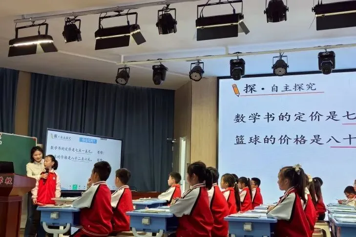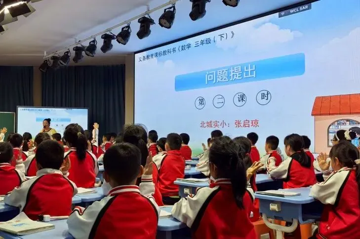 北城实验学校张启琼老师执教《问题解决(乘船)》,以暑假游玩为情境,组织小组合作探究,在实践中培养学生问题解决能力与数学应用意识。