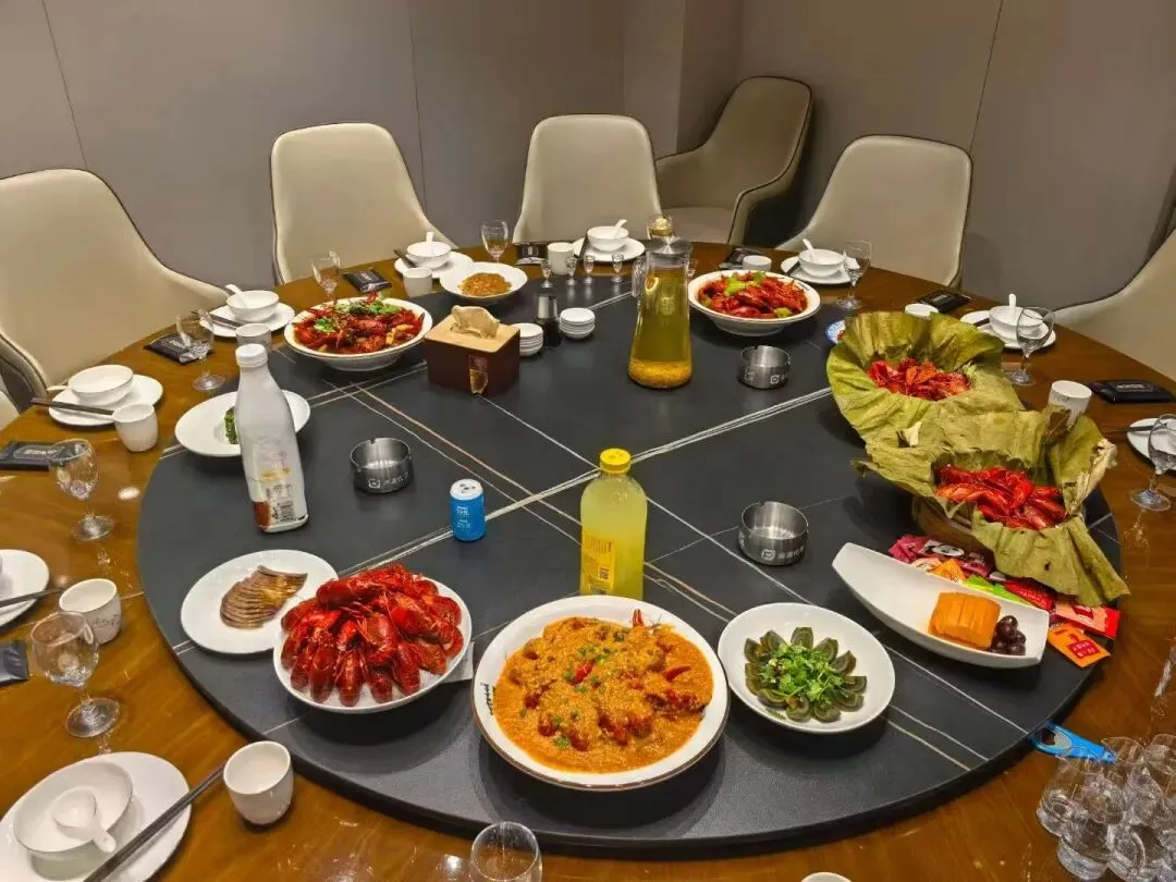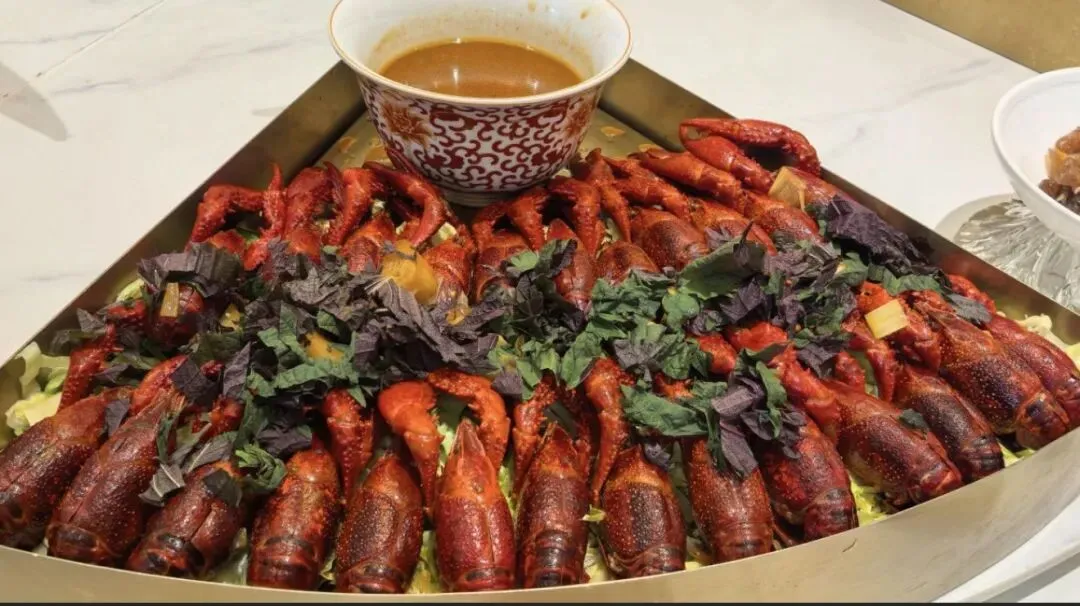 飘香龙虾更是主厨耗时无数次实验研发的,用国宴茅台酒浸泡4小时提香,酒香不浓不淡,裹着红亮的酱汁,吃起来鲜中带醇,完全不呛口。
