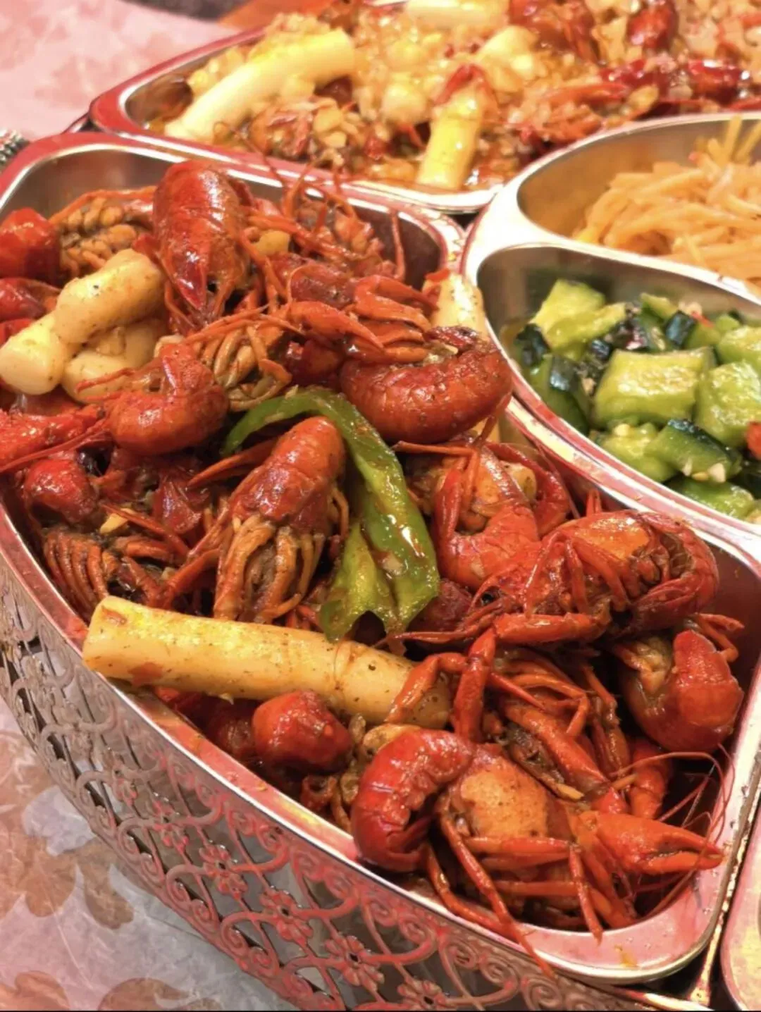 他家的龙虾拼盘一定要试!古法十三香、金汤蒜泥、簋街麻小、冰镇……鲜爽翻倍。金汤蒜泥口味更是舍得下料,每一只龙虾都裹满蒜泥,香到流口水,里面的年糕也吸饱了酱汁,好吃到停不下来。