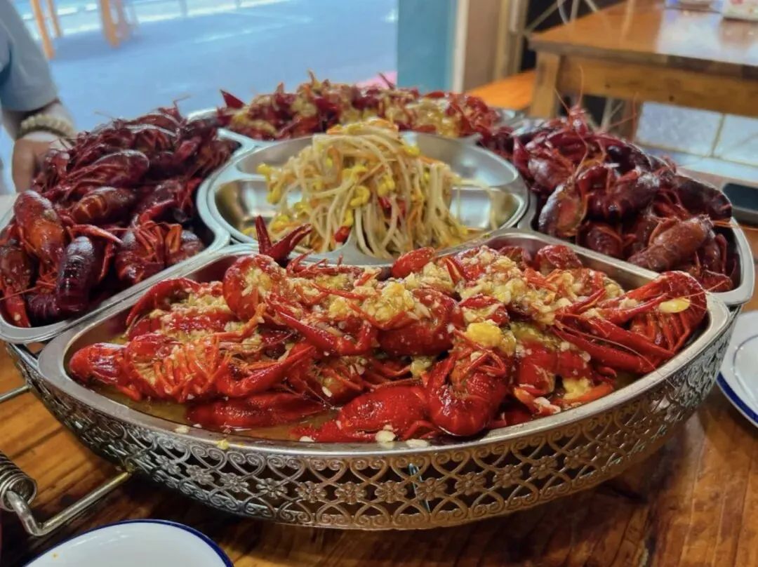 在宝龙广场对面,是周边居民的最爱。他家的龙虾都是现杀现烧,个头均匀,肉质饱满,处理得很干净。主打金湖蒜泥口味,蒜香浓郁不呛口,酱汁浓稠,裹在龙虾上,一口下去,鲜得直跺脚,连虾黄都带着蒜香,好吃到舔手指。