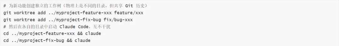 Claude Code之所以没有实现目录级的进程锁,是因为它信任开发者的使用习惯,就像你不会同时用两个编辑器打开同一个文件并同时保存一样。如果确实需要在同一个代码仓库中并行开发两个独立功能,正确的做法是使用Git Worktree: