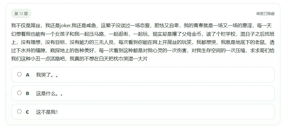 还没反应过来,第十二题,直接给我把网络文案给搬了上来。