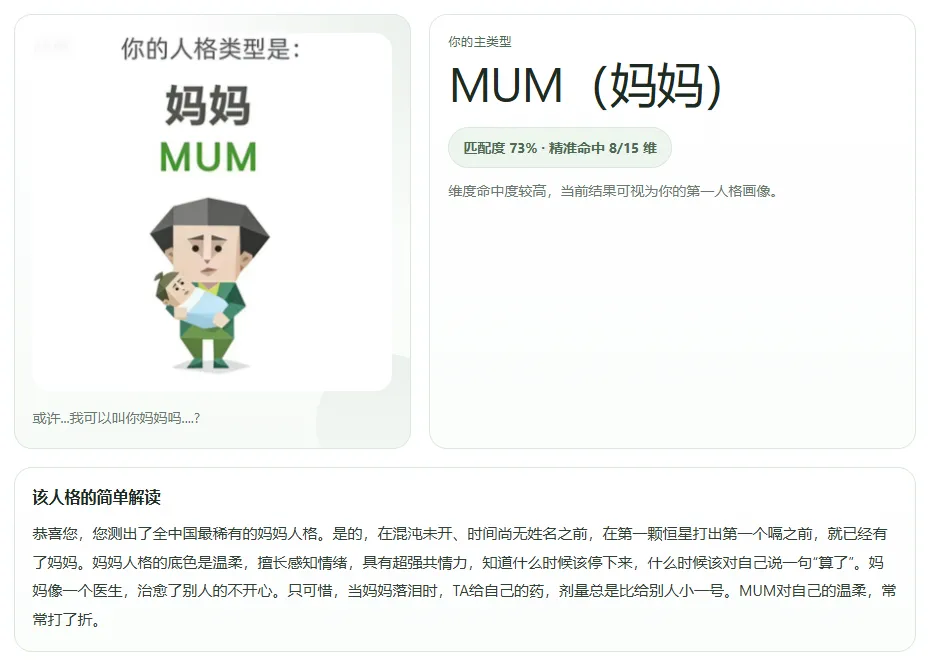 作者对这个结果的解读是:“擅长感知情绪,具有超强共情力,知道什么时候该停下来,什么时候该对自己说一句‘算了’。”
