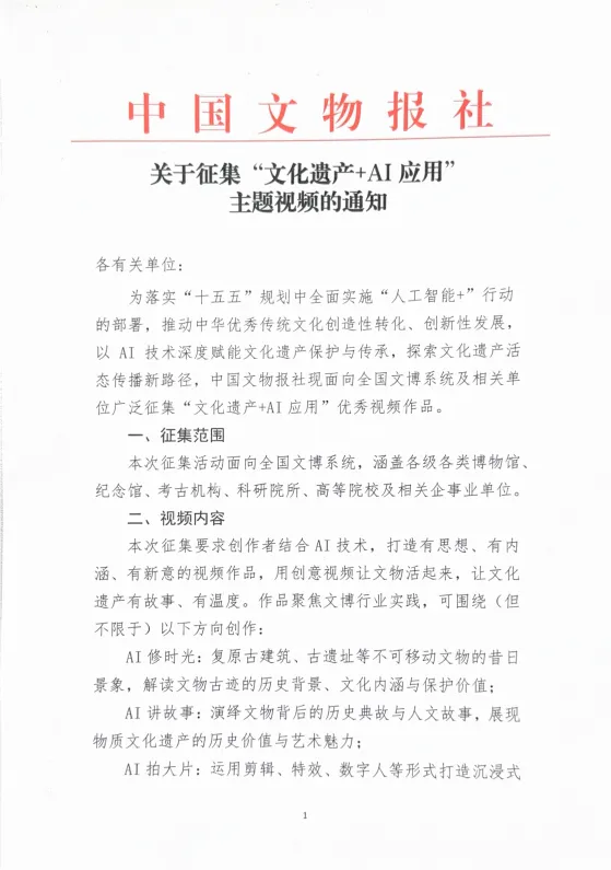 附件:《关于征集“文化遗产+AI应用”主题视频的通知》