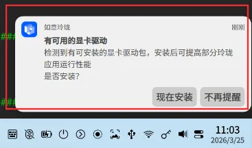 针对 25.0.10 升级用户,若玲珑环境 NVIDIA 驱动未同步升级,使用玲珑应用时将触发更新提醒用户升级玲珑环境显卡驱动。