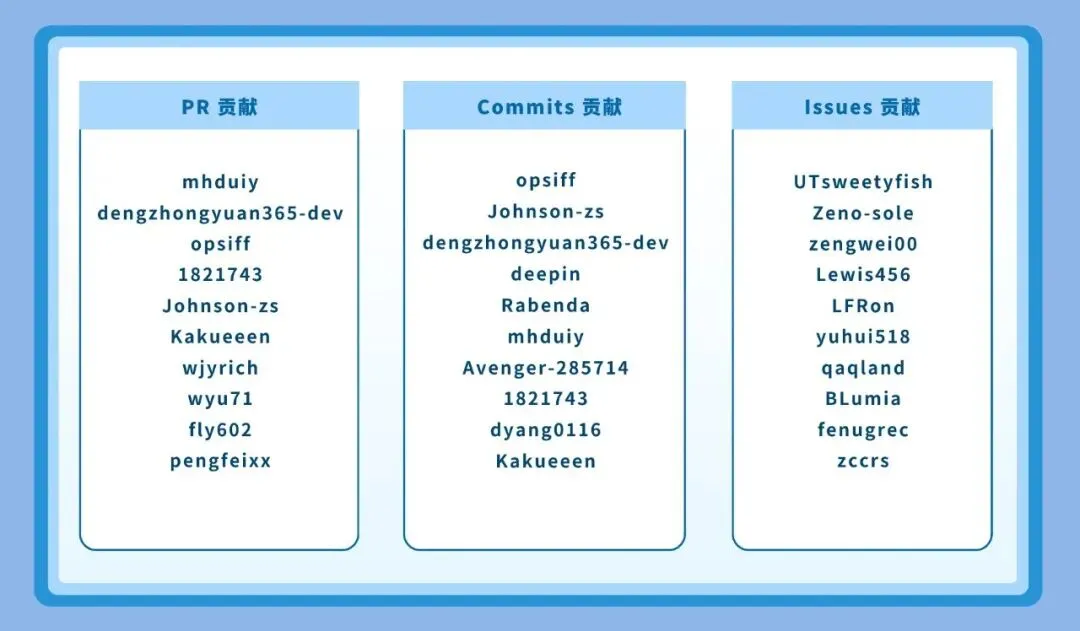 在此,我们特别感谢以下在本次发版周期内贡献突出的社区伙伴(时间区间:2025年6月-2026年4月):