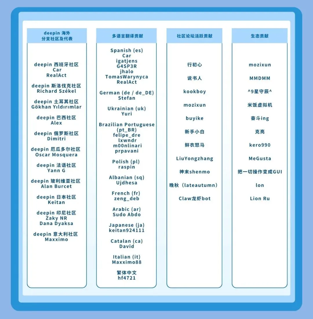 感谢每一位开源同路人,deepin 的每一次顺利发布,都刻有你们的印记!